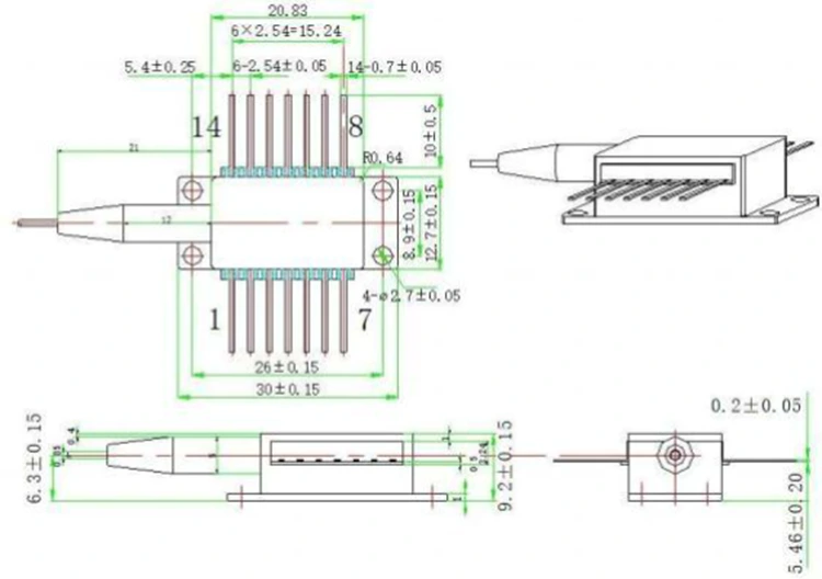 Box Optronics предлагает высококачественный лазер Лазерный диод BTF с волоконным подключением DFB длиной волны 1532 нм для обнаружения газа C2H2. Эти устройства обеспечивают очень стабильную работу в режиме непрерывного излучения. Опционально доступны одномодовые и одномоментные оптоволоконные пигтейлы. Они оснащены встроенными охладителями термоэлектрического охладителя (ТЭО) и следящими фотодиодами. Они часто используются в оптических датчиках. 1532 нм лазерный диод с разветвлённой оптико-электронной связью (DFB) в 14-выводном корпусе BTF может использоваться в системах обнаружения ацетилена (C₂H₂).